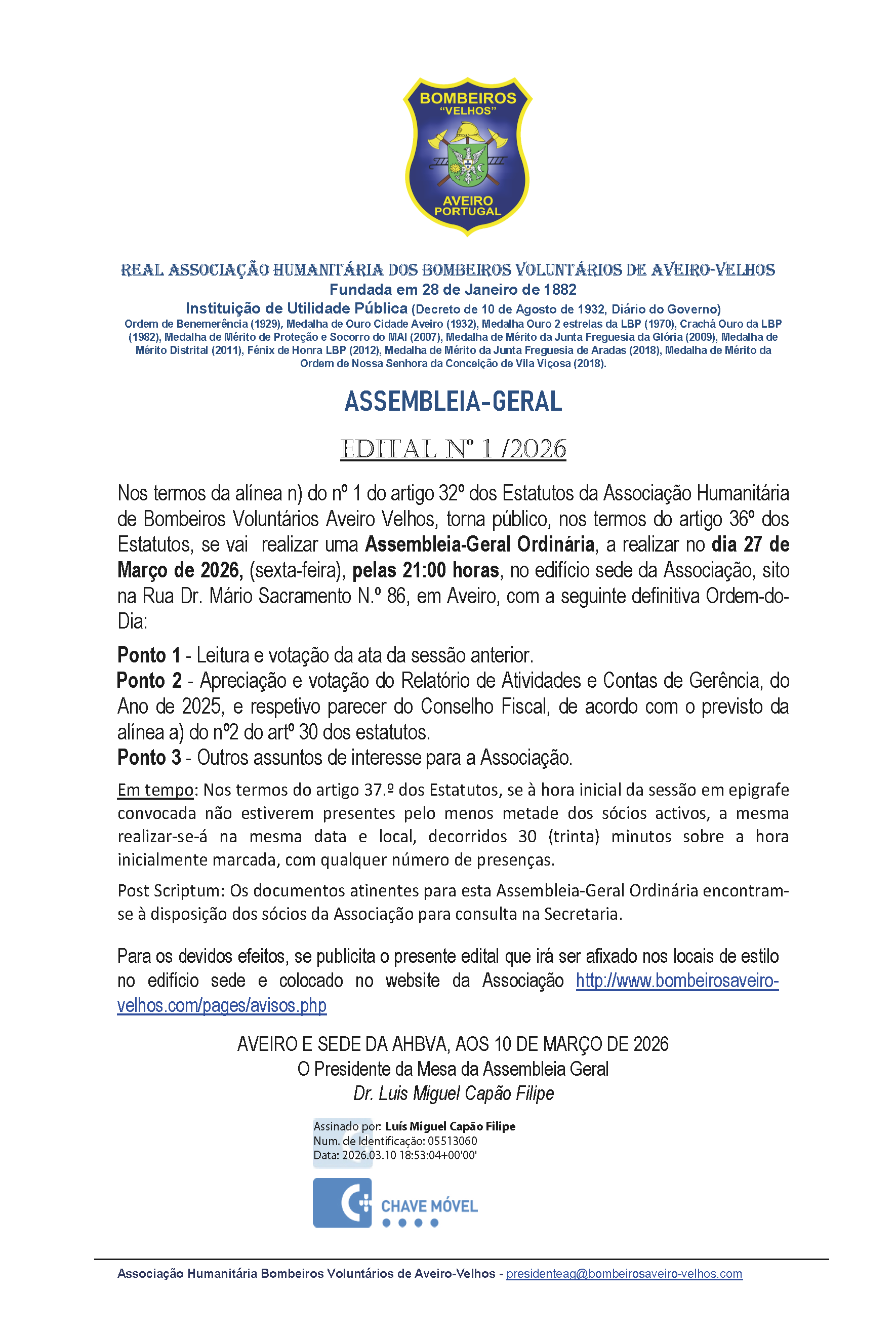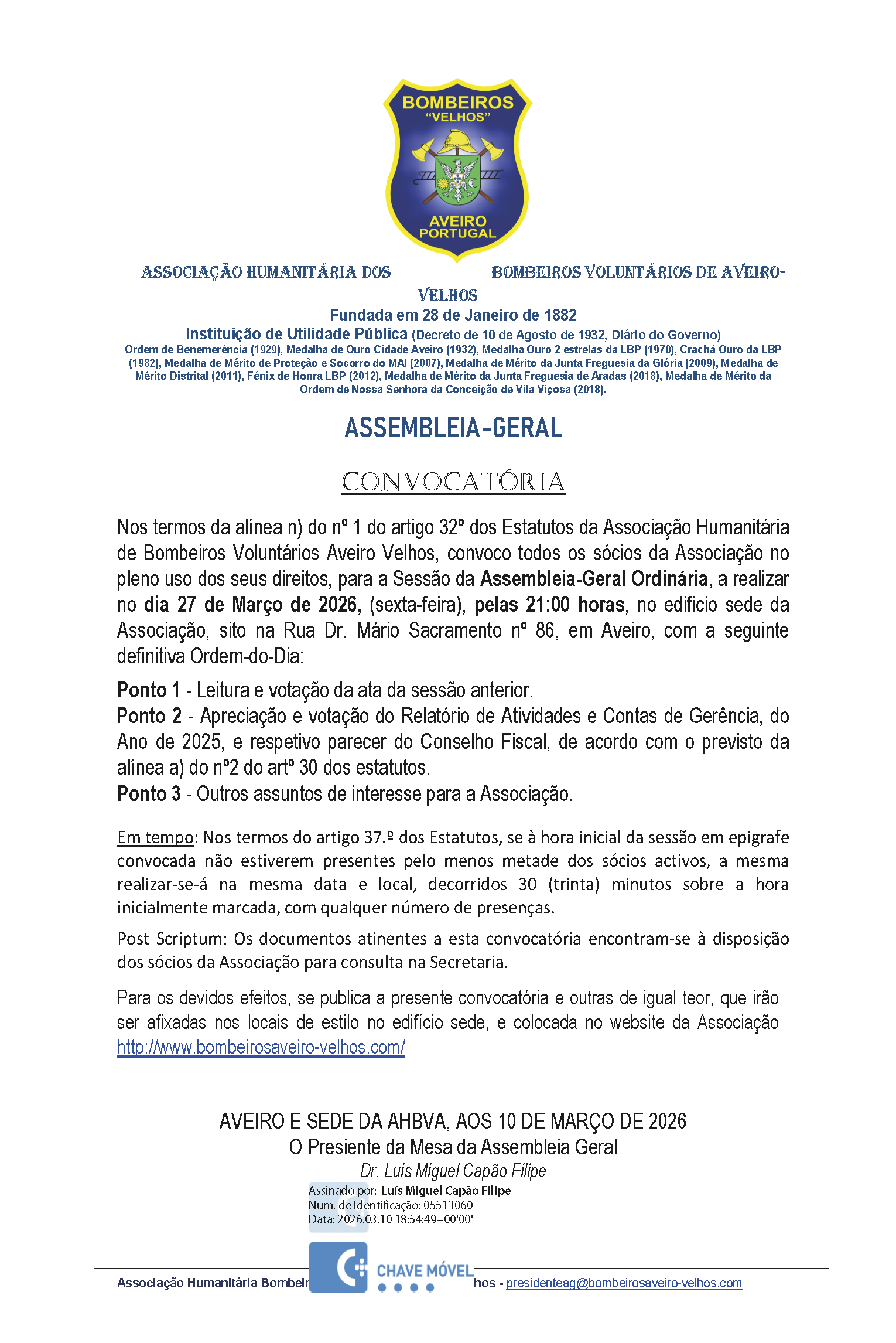 Associação Humanitária dos Bombeiros Voluntários de Aveiro - Velhos | Tel. 234 377 090 | 234 377 092